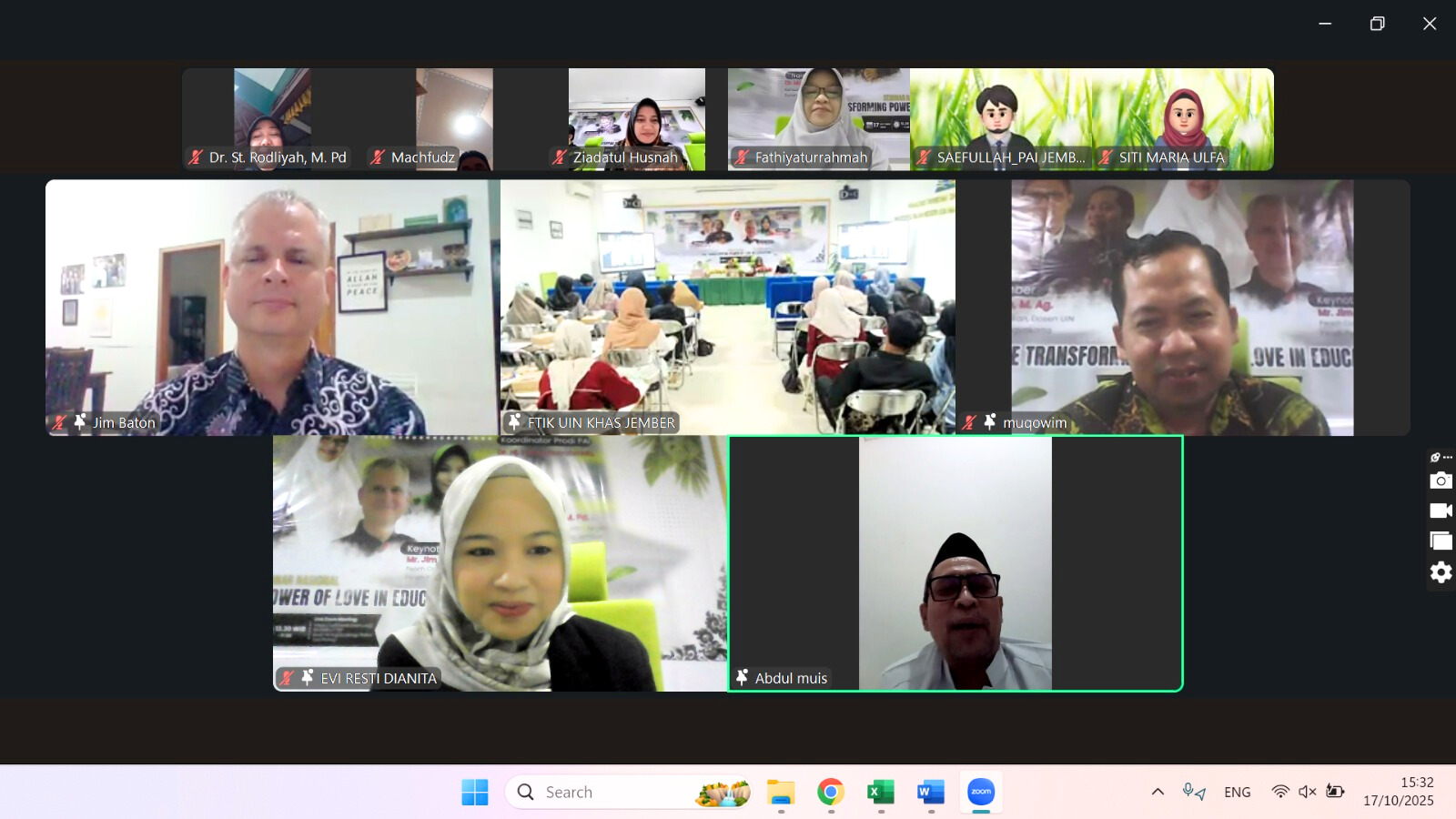 Media Center FTIK - Program studi Pendidikan Agama Islam Fakultas Tarbiyah dan Ilmu Keguruan (FTIK) Universitas Islam Negeri Kiai Haji Achmad Siddiq Jember kembali menegaskan komitmennya dalam pembangunan karakter mahasiswa melalui acara seminar internasional. Tema acaranya ialah "Transforming the Power of Love in Education". Kegiatan ini berlangsung secara hybrid pada hari Jum'at tanggal 17 Oktober 2025, di mana 80 peserta hadir di ruang rapat lantai 2 FTIK, sementara itu nyaris 300 orang peserta bergabung secara live melalui Zoom Meeting.