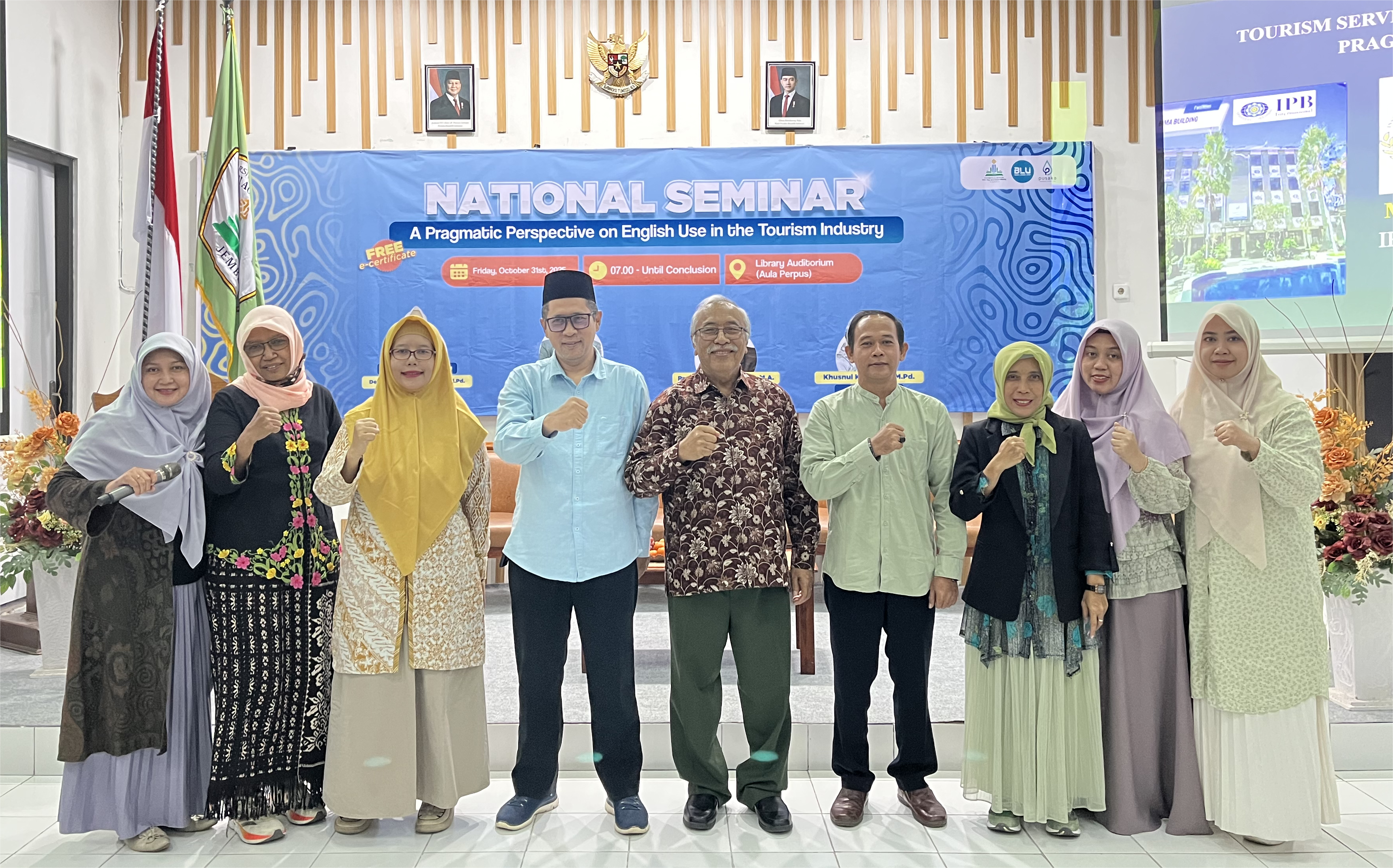Melalui Seminar Nasional dengan tema "A Pragmatic Perspective on English Use in the Tourism Industry, Program Studi Tadris Bahasa Ingris (TBI) UIN KHAS Jember mengupas pentingnya Bahasa Layanan Pariwisata, dilaksanakan di Auditorium Perpustakaan pada Jum'at, 31 Oktober 2025. Seminar yang berlangsung mulai pukul 08.00 ini diikuti oleh mahasiswa, dosen internal dan external, praktisi pendidikan bahasa Inggris dan sejumlah praktisi desa wisata.